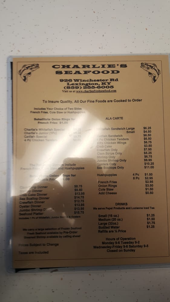 Looking for fresh and delicious seafood in Lexington, KY? Look no further than Charlie's Seafood & Carry-Out. Located at 926 Winchester Rd, this hidden gem offers a variety of mouth-watering dishes such as the Whitefish Special, Crab Cake Dinner, and Crawfish Dinner. With options for takeout, delivery, and catering, Charlie's makes enjoying seafood easy and convenient. Customers rave about the White Fish Sandwich and Catfish Sandwich, both served on whole wheat buns with flavorful slaw. While the restaurant may not offer dine-in seating, the quality of the food and the friendly service make it worth the visit. So, if you're craving a great fish sandwich or a seafood platter, head to Charlie's Seafood & Carry-Out for a satisfying dining experience.